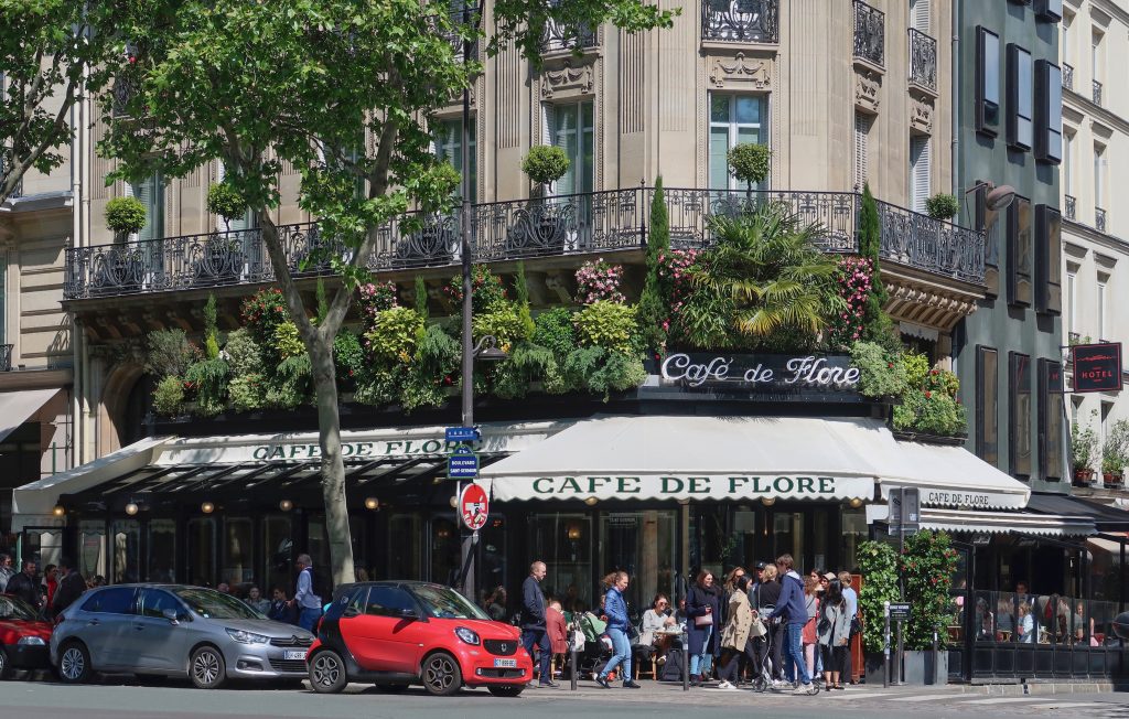 Café de Flore nằm ở quận Saint-Germain, trung tâm Paris. Quán mở cửa từ cuối thế kỷ 19. Nơi đây từng là điểm hẹn của giới trí thức Paris. Jean-Paul Sartre và Simone de Beauvoir thường xuyên lui tới. Không gian mang phong cách cổ điển, sang trọng. Bàn ghế nhỏ, sát nhau, tạo cảm giác gần gũi. Cà phê thơm, đậm vị Pháp truyền thống. Khách ngồi ngoài trời ngắm phố, tán gẫu. Quán nổi bật với biển hiệu đỏ và hoa tươi. Café de Flore là một biểu tượng văn hóa Pháp.