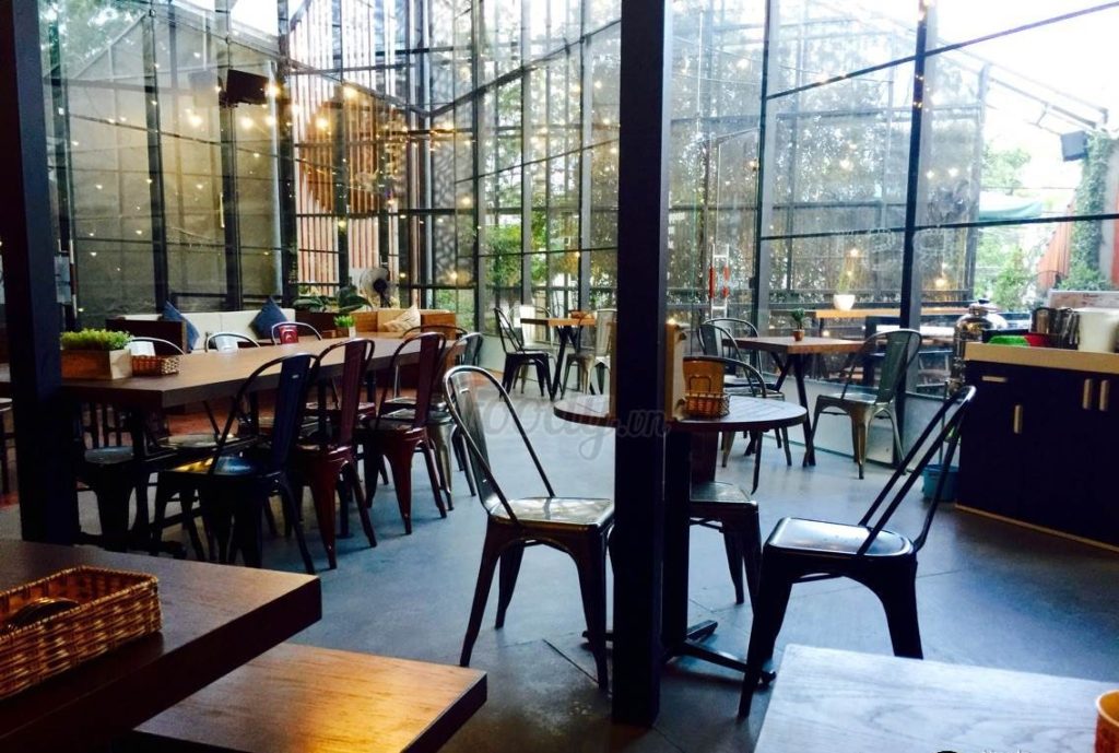 . Quán thu hút khách nhờ không gian hiện đại với thiết kế mở, sử dụng kính lớn để đón ánh sáng tự nhiên, cùng màu sắc chủ đạo là xám và xanh lá cây, mang lại cảm giác thư thái và gần gũi với thiên nhiên.Không gian quán rộng rãi, chia thành khu vực trong nhà và ngoài trời, thích hợp cho việc làm việc, học tập, gặp gỡ bạn bè hoặc tổ chức sự kiện nhỏ. Quán cũng là địa điểm lý tưởng cho những ai yêu thích chụp ảnh sống ảo nhờ thiết kế độc đáo và ánh sáng tự nhiên.