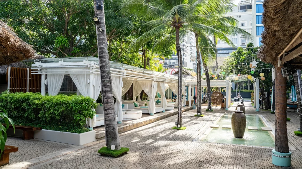 Ngoài ra, nơi đây còn nổi tiếng với các chương trình giải trí sôi động như biểu diễn múa lửa, DJ và các bữa tiệc theo chủ đề, đặc biệt là vào đêm trăng rằm. Bạn cũng có thể thư giãn trên những chiếc ghế bean bag đầy màu sắc hoặc giường nằm ngay sát biển.
