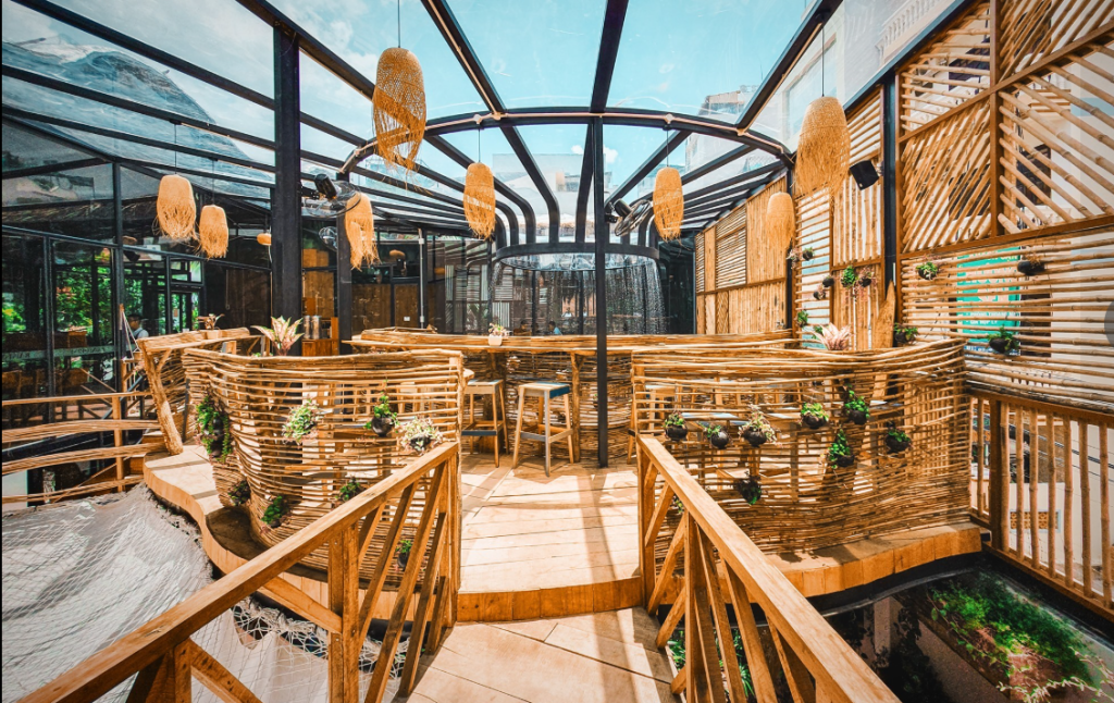 Rainforest Coffee gây ấn tượng mạnh mẽ với thiết kế mở, sử dụng nhiều vật liệu tự nhiên như gỗ và tre. Không gian quán được chia thành nhiều khu vực, mỗi khu mang đến một trải nghiệm khác biệt, từ khu vực có thác nước lộ thiên đến khu vực tràn ngập cây xanh, tạo nên không gian thư giãn tuyệt vời cho khách hàng.