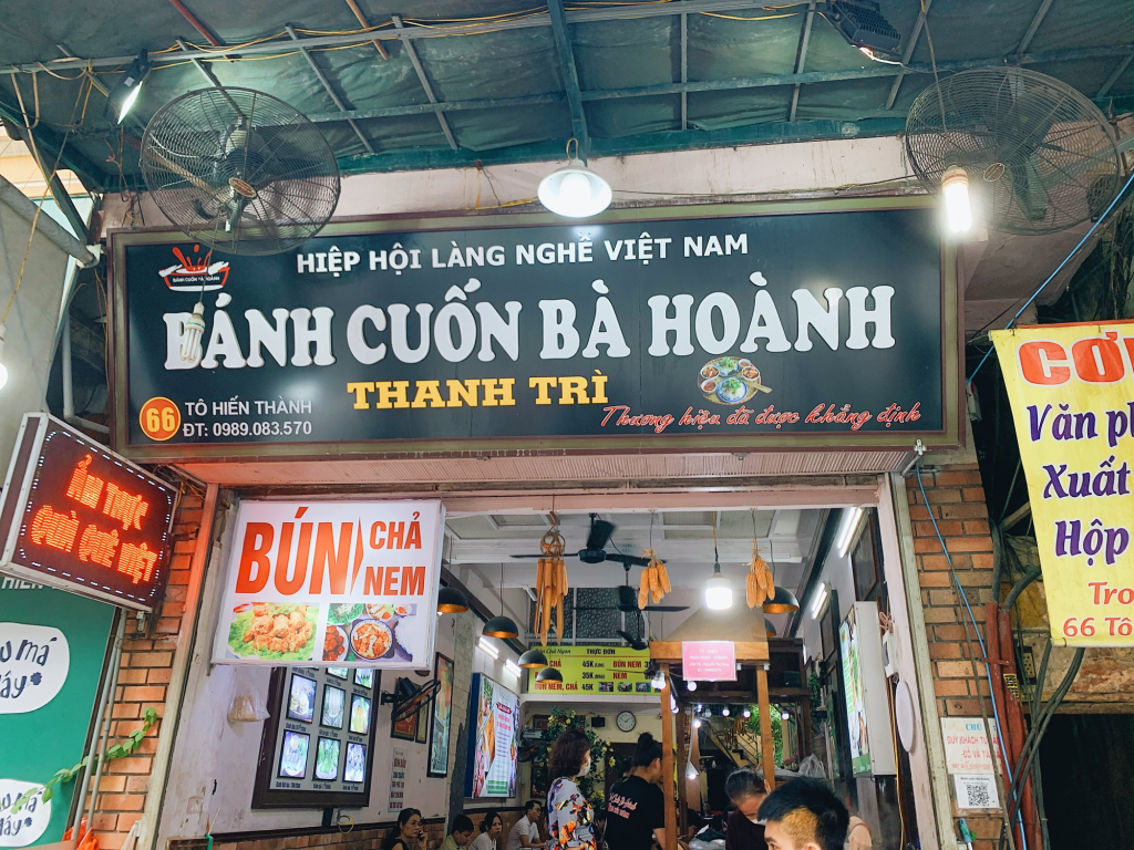 Bánh cuốn Bà Hoành là quán nổi tiếng lâu đời ở Hà Nội. Quán được Michelin Guide vinh danh trong hạng mục Bib Gourmand. Bánh tráng mỏng, thơm, nhân thịt băm và mộc nhĩ rất đầy đặn. Nước chấm đậm đà, có tinh dầu cà cuống tạo mùi đặc trưng. Chả quế nóng hổi ăn kèm khiến hương vị thêm trọn vẹn. Không gian bình dân, sạch sẽ, lúc nào cũng đông khách. Phục vụ nhanh, giá hợp lý, phù hợp cả khách du lịch. Đây là điểm ăn sáng truyền thống được người Hà Nội yêu thích.