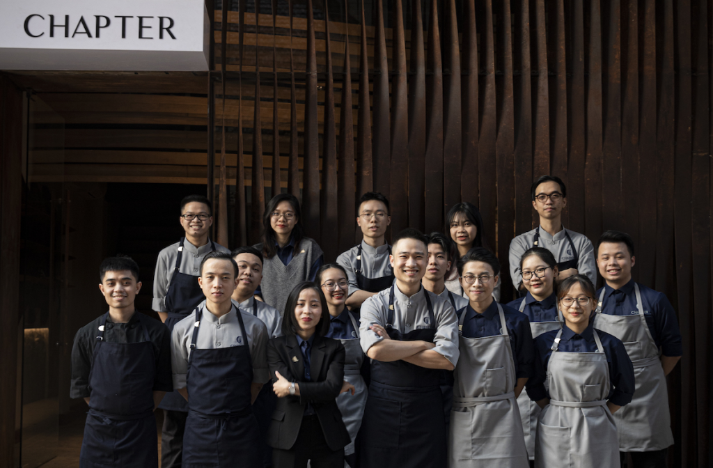 Chapter Dining & Grill là điểm đến ẩm thực sang trọng tại Hà Nội. Quán được Michelin Guide vinh danh hạng Michelin Selected vào năm 2023 và 2024. Nhà hàng chuyên về món ăn nướng hiện đại, sử dụng kỹ thuật nướng than hồng Binchotan Nhật Bản. Thực đơn gồm 13 món nếm thay đổi theo mùa, chia thành các phần: Vườn, Biển, Đất và Trời. Mỗi món ăn là một câu chuyện ẩm thực, kết hợp tinh tế giữa hương vị truyền thống và hiện đại. Không gian nhà hàng sang trọng, thiết kế mở với bếp lộ thiên tạo trải nghiệm thú vị cho thực khách.