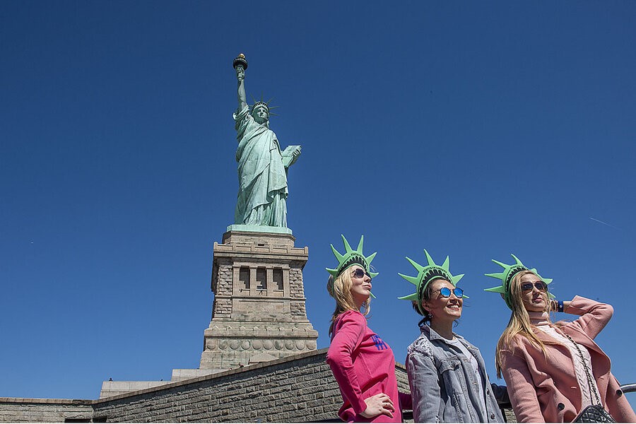 Tượng Nữ thần Tự do ở đảo Liberty, New York. Biểu tượng của tự do và dân chủ Mỹ. Cao 93 mét, tặng từ Pháp năm 1886. Du khách có thể leo lên vương miện ngắm cảnh. Khu vực có bảo tàng lịch sử và văn hóa. Nên mua vé phà trước để tránh chờ lâu. Đây là điểm đến không thể bỏ qua. Thời gian tham quan tốt nhất là sáng hoặc chiều. Chuẩn bị quần áo thoải mái và đồ chống nắng.
