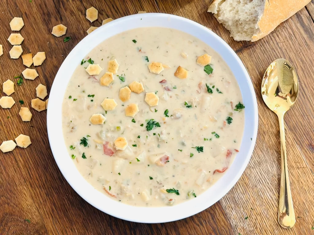 Clam Chowder là món súp nghêu truyền thống của Mỹ, đặc biệt phổ biến ở vùng bờ Đông như Boston và New England. Món súp này có vị béo ngậy, được nấu từ nghêu tươi, kem, khoai tây, hành tây và thảo mộc. Clam Chowder thường được phục vụ nóng, rất hợp để ăn trong ngày lạnh. Đây là món ăn ấm áp và thơm ngon, được nhiều người yêu thích.