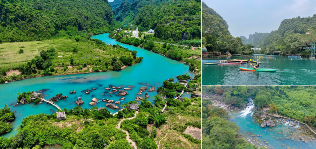 Sông Chày – Hang Tối nằm trong Vườn quốc gia Phong Nha – Kẻ Bàng. Khu vực này thuộc Di sản Thiên nhiên Thế giới UNESCO. Sông Chày có làn nước xanh ngọc bích, hiếm nơi nào có được. Du khách có thể chèo thuyền kayak hoặc zipline qua sông. Hang Tối nằm ven sông, mang vẻ đẹp hoang sơ và kỳ bí. Bên trong hang có bùn khoáng tự nhiên để tắm thư giãn. Không gian mát lạnh, tối hoàn toàn, tạo cảm giác phiêu lưu mạo hiểm. Các hoạt động du lịch kết hợp thể thao, trải nghiệm thiên nhiên. Khu du lịch thân thiện với môi trường và gìn giữ di sản.