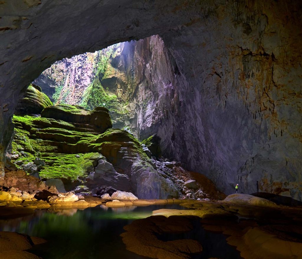 Hang Sơn Đoòng nằm trong Vườn quốc gia Phong Nha – Kẻ Bàng. Đây là hang động lớn nhất thế giới hiện nay. Hang được UNESCO công nhận là di sản thiên nhiên quý giá. Hang dài hơn 9 km, rộng và cao ngoạn mục. Bên trong có hệ sinh thái riêng biệt, độc đáo, du khách chỉ được khám phá qua tour an toàn. Các khối thạch nhũ kỳ vĩ, đồ sộ khiến ai cũng kinh ngạc. Ánh sáng tự nhiên xuyên qua các lỗ thông tạo cảnh đẹp, nhiệt độ trong hang mát mẻ, không khí trong lành. Sơn Đoòng là điểm đến mơ ước của nhiều nhà thám hiểm.