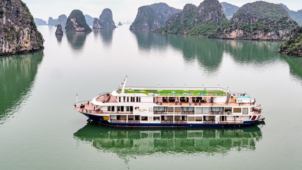 Mon Chéri Cruise đưa bạn khám phá vẻ đẹp kỳ vĩ của Vịnh Hạ Long với hàng nghìn đảo đá vôi sừng sững, làn nước trong xanh và bầu không khí trong lành. Hành trình thường xuyên lựa chọn những tuyến đi ít đông, giúp bạn tận hưởng sự yên bình, hoang sơ và gần gũi với thiên nhiên. Bạn sẽ có cơ hội tham quan các hang động huyền bí, bãi tắm hoang sơ và chiêm ngưỡng cảnh hoàng hôn tuyệt đẹp trên vịnh.
