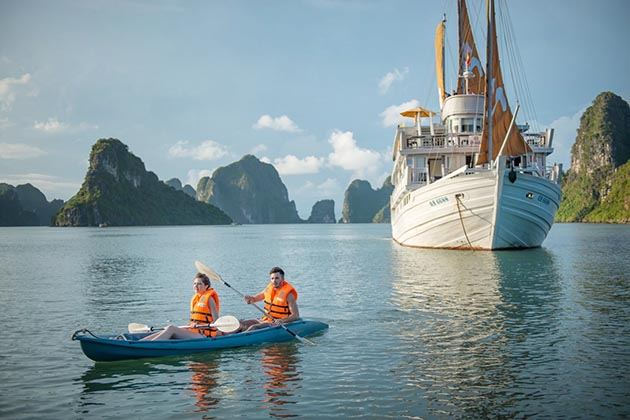 Heritage Bình Chuẩn đưa bạn khám phá thiên nhiên hoang sơ của Vịnh Lan Hạ. Du thuyền đi qua những đảo đá vôi kỳ vĩ, rừng ngập mặn xanh mướt và các làng chài truyền thống. Bạn có thể chèo kayak, bơi lội hay thư giãn trên boong tàu ngắm bình minh, hoàng hôn tuyệt đẹp. Rất phù hợp với những ai yêu thiên nhiên và muốn tìm sự yên bình.