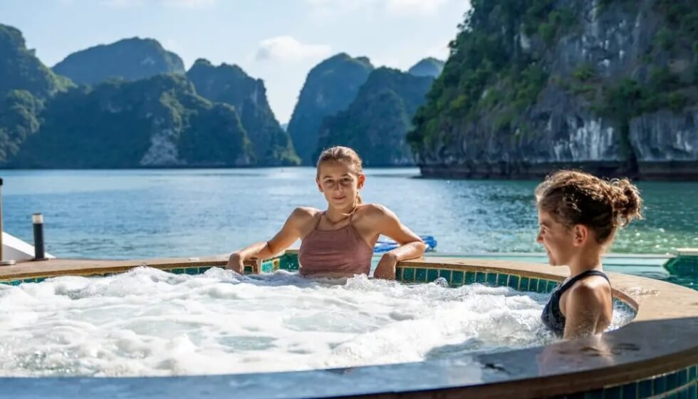 Indochine Cruise nhiều hoạt động đa dạng cho du khách trong suốt hành trình. Bạn có thể tận hưởng không gian thư giãn tại quầy bar, thưởng thức âm nhạc nhẹ trên boong tàu hay ngắm hoàng hôn lãng mạn giữa vịnh. Trên tàu còn có spa trị liệu và các chương trình giải trí buổi tối. Mỗi trải nghiệm đều được thiết kế để kết hợp nghỉ dưỡng, thư giãn và khám phá văn hóa Việt Nam.