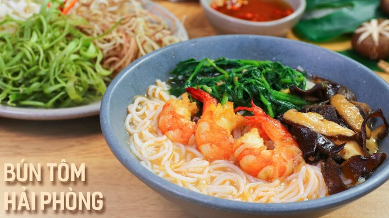 Bún tôm là món ăn đặc sản quen thuộc ở Hải Phòng. Nước dùng ngọt thanh từ tôm tươi và xương hầm. Tôm được luộc hoặc xào sơ cho dậy mùi thơm. Sợi bún mềm, trắng, ăn kèm rau sống tươi mát. Món ăn thường thêm chả, giò và hành phi thơm. Vị ngọt tự nhiên và nước dùng nóng rất dễ ăn. Bún tôm giản dị nhưng mang đậm hồn ẩm thực đất cảng.