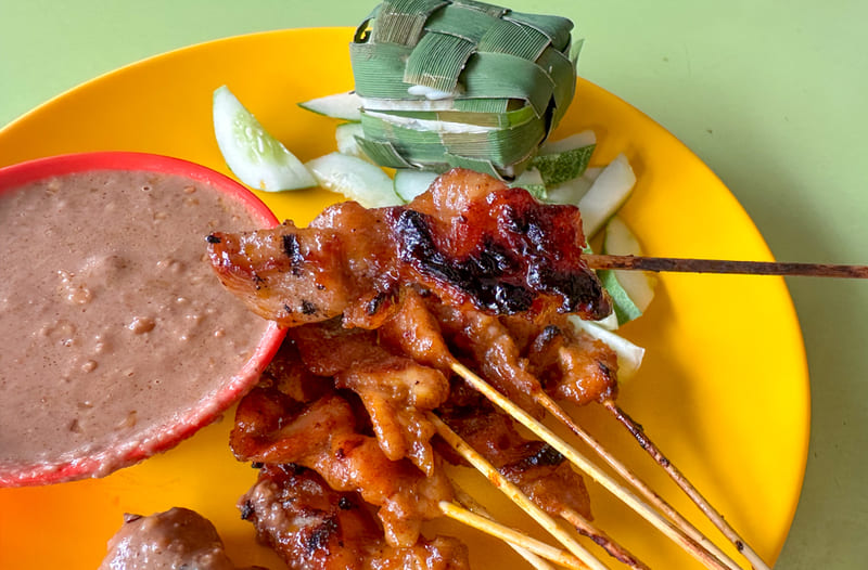 Satay (Sate) là món thịt xiên nướng nổi tiếng Indonesia. Thịt thường là gà, bò hoặc dê. Thịt được ướp gia vị rồi xiên vào que tre. Sau đó nướng trên than cho thơm vàng. Món ăn kèm với sốt đậu phộng béo ngậy. Đôi khi ăn với nước tương ngọt. Có thể dùng kèm cơm nắm lontong. Satay phổ biến ở các quán ăn và lễ hội. Hương thơm thịt nướng khiến ai cũng thích.