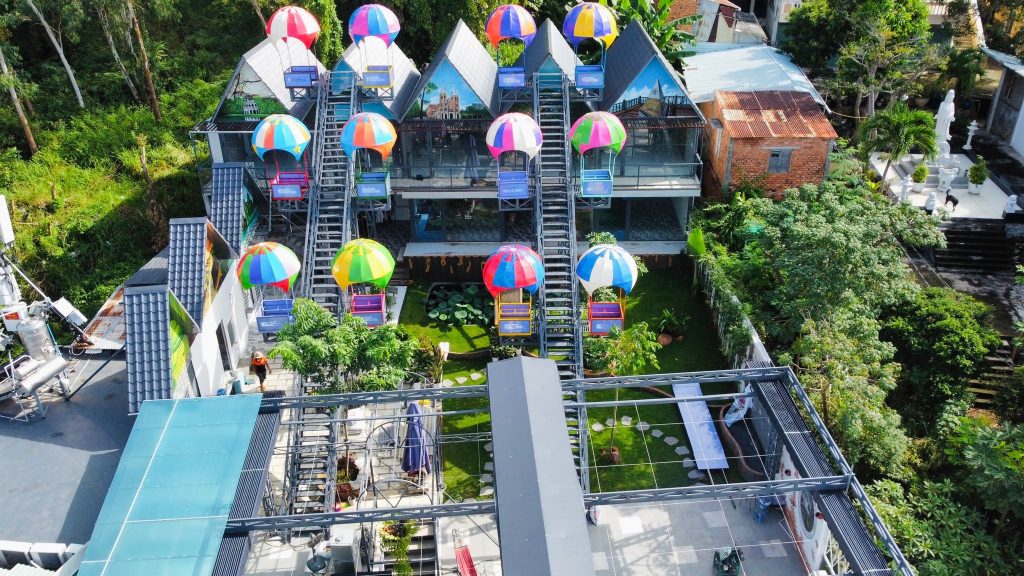 Wonders Coffee and Homestay nổi bật với thiết kế hiện đại và sang trọng, đặc biệt là các chỗ ngồi hình khinh khí cầu độc đáo, tạo điểm nhấn riêng biệt. Quán nằm trên lưng chừng núi, với không gian ngoài trời rộng rãi, lý tưởng để ngắm hoàng hôn và biển. Quán thường xuyên tổ chức các buổi nhạc acoustic nhẹ nhàng vào cuối tuần, tạo không khí ấm cúng và thư giãn cho khách hàng. Ngoài ra, Wonders Coffee and Homestay còn cung cấp dịch vụ homestay với các phòng đơn, phòng đôi và phòng gia đình, phù hợp với nhiều nhu cầu lưu trú