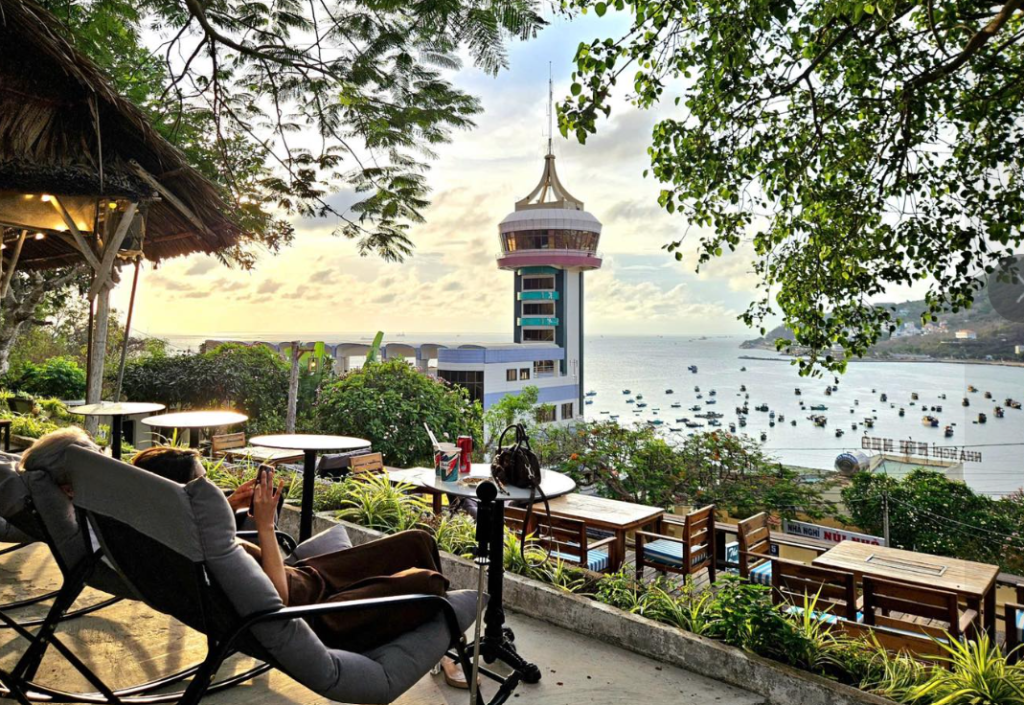 Mang đến không gian thoáng đãng với tầm nhìn toàn cảnh thành phố và biển cả. Đây là điểm đến lý tưởng để thưởng thức cà phê, trà, sinh tố và các món ăn nhẹ trong không khí yên bình, thư giãn. Quán có không gian rộng rãi, thoáng mát với nhiều khu vực ngồi khác nhau như sảnh võng, sảnh ghế bố, sảnh gỗ và sảnh ghế cao.