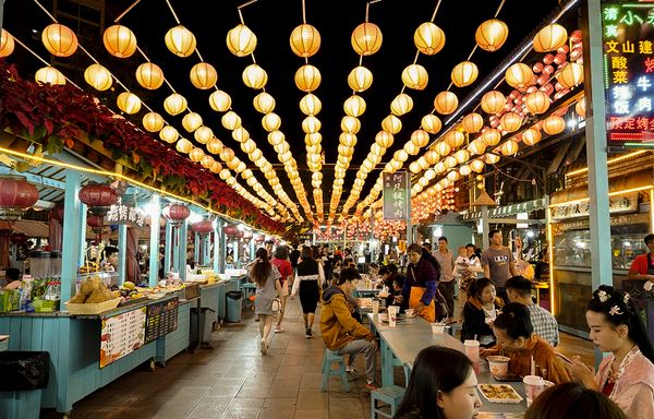 Địa điểm không thể bỏ qua nếu bạn yêu thích ẩm thực đường phố. Hàng trăm quầy hàng bày bán các món ăn đặc trưng Trung Hoa như xiên nướng, lẩu cay, bánh bao, trà sữa… vừa ngon vừa rẻ. Đây cũng là nơi để bạn cảm nhận rõ nét nhịp sống về đêm của thành phố biên giới này.